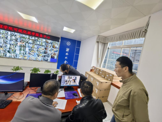 徐运保一行来到学校教学监控中心,通过高清数字大屏实时查看任课教师在教室的授课画面,对教师授课状态、课堂管理效能及学生参与度等进行重点查看。