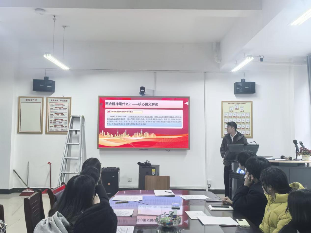 党课环节,谭浩博书记围绕二十届四中全会与全国“两会”精神讲授专题党课,结合青年党员使命谈责任担当。随后,全体党员观看《榜样10》专题节目,学习先进典型事迹;同时学习《湖南通报8起违反中央八项规定精神问题》,以正面引领与反面警示相结合,筑牢廉洁自律思想防线。