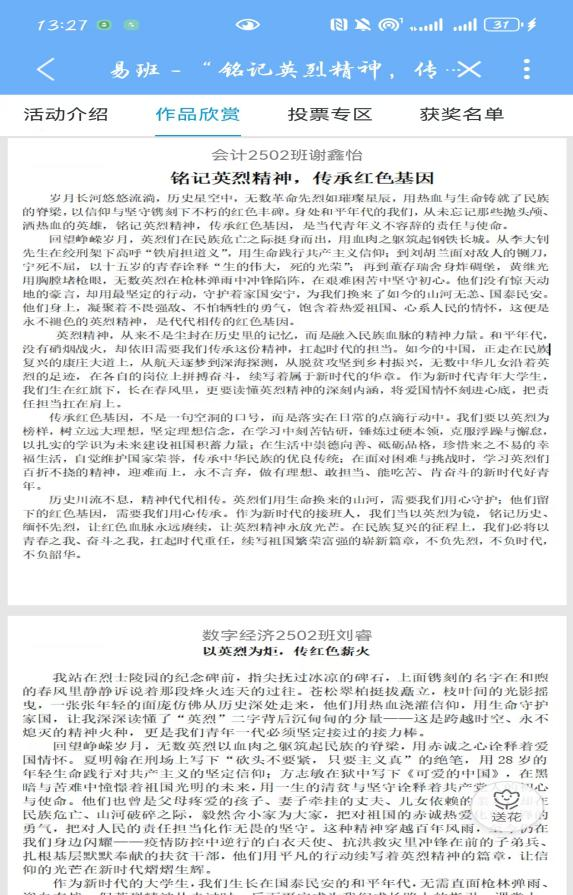 “铭记英烈精神,传承红色基因”寻迹践悟主题活动优秀作品欣赏及投票界面
