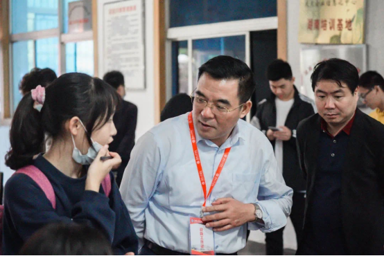 学院党委书记钱祖煜与新生交谈