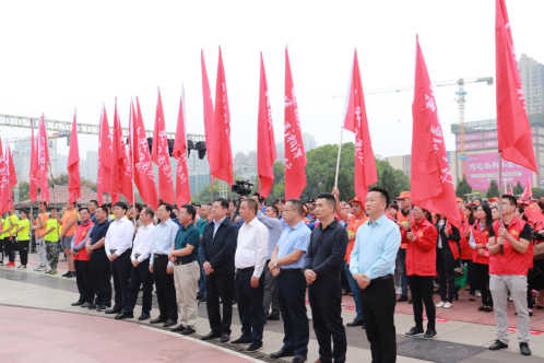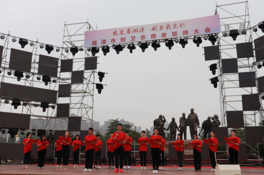 湘潭市志愿者誓师大会于湘潭市东方红广场举行。湘潭市各机关单位,各社区,志愿组织以及五所高校的志愿者们共计两千名整齐有序站立在会场上。七点半左右人员到齐,誓师大会正式开始。