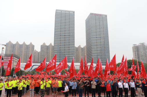 介绍结束后,志愿者代表们在台上进行了慷慨激昂的创卫朗诵,朗诵从创卫之初讲到当下创卫,从创卫前讲到创卫后,从创卫事讲到创卫人,引起了在场志愿者们的强烈认同。紧接着便是由湘潭市创卫办领导们上台,为志愿者代表们进行授旗仪式,代表们奋力挥动大旗,代表了创卫的决心和信心。之后便是全场志愿者进行宣誓,宣誓创卫攻坚的决心。0638太阳集团官网志愿者们右手紧握,跟随着主持人庄严宣誓。