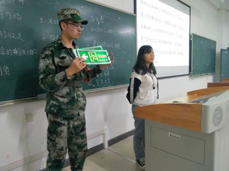 本次消防宣传活动由主办方管理学院安全督察部和协助方国旗护卫队队员共同完成,他们以两人一组的形式分别前往各个班级进行下班宣讲,开展全方位的校园消防宣传。