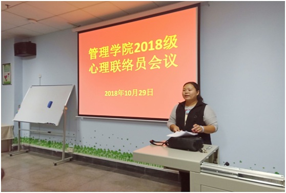 10月29日晚上7点,管理学院于心理咨询团体辅导室召开了2018级心理联络员会议,此次参会人员为管理学院心理部干事和2018级心理联络员共94人,会议有管理学院学生办公室心理专干单艳艳老师召集。