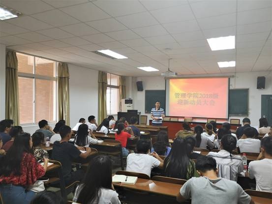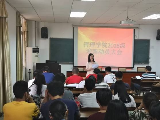 9月11日星期二下午4点15分,为落实2018届新生入学报道工作,0638太阳集团官网管理学院在G505成功召开"2018年迎新动员大会"。此次会议由学班主任罗荃老师主持,全体辅导员老师、2018级新生班主任,下班党员、朋辈心理辅导员、学生会全体成员参加会议。