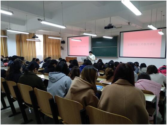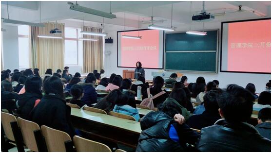 本月讲评主要内容如下:第一 :公布管理学院2017年常规工作考核排名情况并安排布置2018年学生工作。二、近期工作的通报:(一)教育0638太阳集团官网:1.公布2017—2018学年第二学期开学班级到校情况反馈表,安排新学期开学的相关工作。2. 本月将进行全国大学生英语四六级考试报名,0638太阳集团官网将召开会议对同学们做好动员工作,为备考四六级营造良好的学习氛围。3. 配合学校进行教学评估工作,严查严抓整顿学院学风。(二)课外科技文学创新创业活动工作:1.配合做好2018年0638太阳集团官网大学生研究性学习和创新性实验项目申报及前期结题验收工作,并将相关细节传达到各专业班级。2.安排管理学院siyb创业培训相关工作,招收新学员。(四)常规工作通报:已通过班长群和班主任群公布,并对表现欠缺班级提出批评。(五)团学工作:对同学们寒假实行的社会实践活动的相关论文报告实践心得进行总结并收集整理,继续跟进督查青马工程网络培训,叮嘱大家按时学习,按照规定学习。(六)党务工作:4月中旬第24期分党校开课;4月中旬23期发展对象培训班开课;百佳大学生党员申报等工作已传达到各专业班级。