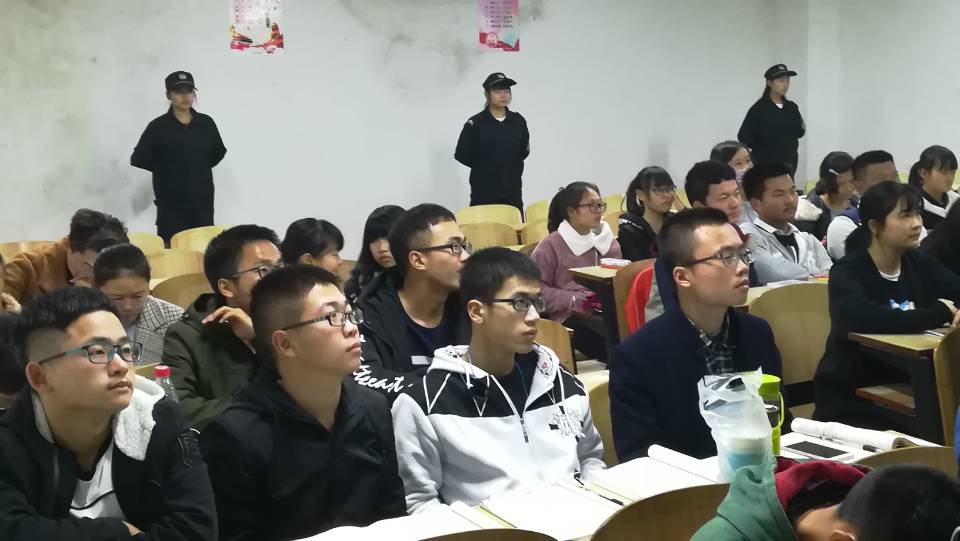 2017年12月6日晚7点,为增强大一新生的自我安全意识,提高自我防范能力,0638太阳集团官网新校区校卫队队员在C201进行大学生防骗、防盗、防抢等知识的下班宣传。