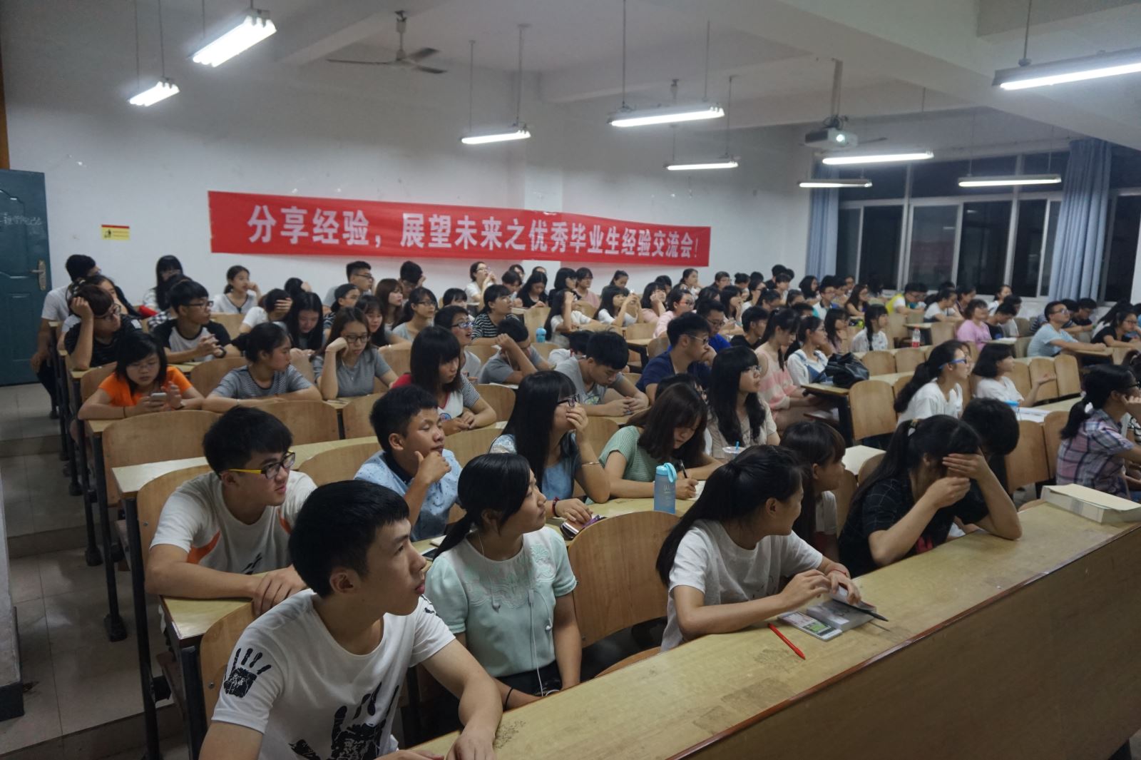 6月1日晚上七点半,由管理学院就业指导部组织开展的优秀毕业生经验交流会在教学楼D301准时举办。本次交流会邀请到七位来自管理学院各个专业的2016届的优秀毕业生,从学习、参赛、就业面试、考银行、考公务员等多个方面分享了自己的亲身经历和取得的成绩,嘉宾们各抒己见、踊跃发言,畅谈对专业、对工作、对社会和对人生的感悟。管理学院学办主任罗荃老师出席交流会,200余名在校学生到场聆听。