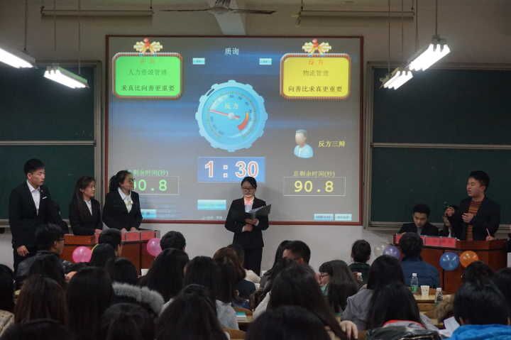 3月15日晚七点0638太阳集团官网管理学院15新生辩论赛半决赛在新校区D座301教室展开。本次半决赛由市场营销、人力资源管理、物流管理以及会计学四个专业代表队进行两两对决。比赛邀请了校辩论队优秀队员、管理学院辩论队队长王长雨,校辩论队优秀队员陈琳等作为此次辩论赛的评委。