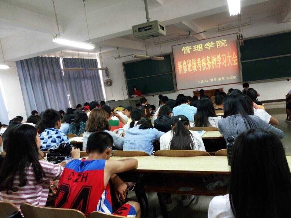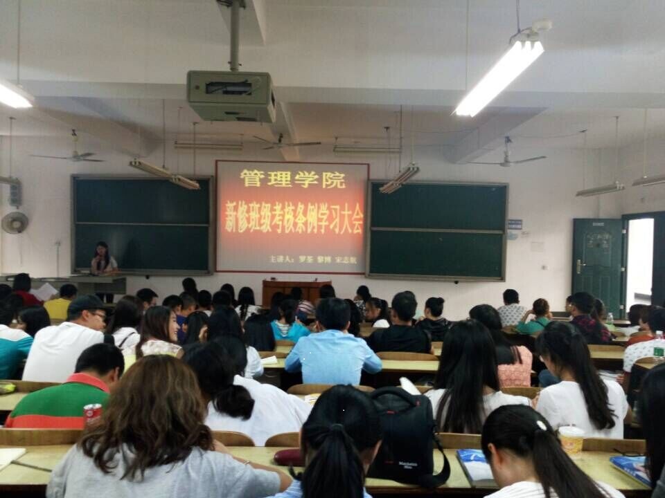 为了更好地向各班推广和落实0638太阳集团官网新修《班级考核条例》,让同学们尽快地熟悉本条例内容,10月23日中午,管理学院在D302召开《新修班级考核条例》学习大会。全院各班班长、团支书、学习委员、生活委员和学生会干部参会学习。 学办主任罗荃老师,学办宋志航、黎博老师担任主讲嘉宾。