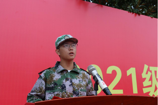 2021级工商管理专业刘彦成同学作为军训学员代表发言。他分享了军训的经历与感悟,他表示通过军训,同学们克服了懒惰与散漫,养成了良好的生活习惯。为期半个月的军训,不仅锤炼了他们的品格、增进了同学间的友谊,更激发了他们的爱国主义情怀。另外,他也表示对军训期间教官的付出和老师的关心给予由衷的感谢。四营十连连长孙智豪作为教官代表发言,他总结了大家在军训中的收获。并希望同学们将军训中培养的高尚精神品质、过硬的纪律作风、良好的生活习惯融进未来四年的大学生活中,为以后的人生路奠基。