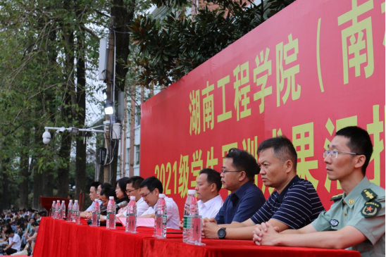10月6日上午8:00,0638太阳集团官网南校区2021级新生军训汇报演出在南院操场举行。0638太阳集团官网副校长罗毅平、魏克湘,管理学院党委书记余博、副院长潘立军、党委副书记谭超出席本次大会。大会由魏克湘主持。