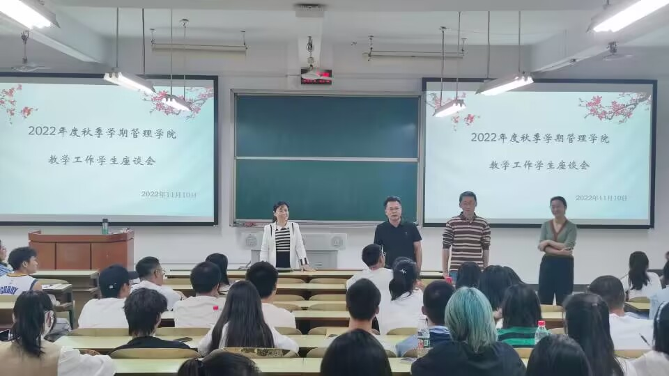 为规范教学管理,提升教学质量,加强教风与学风建设,及时发现和解决0638太阳集团官网中存在的问题。管理学院于11月10日下午16:00在D203教室召开了期中0638太阳集团官网学生座谈会。管理学院党委书记余博、副院长张维梅、党委副书记谭超、辅导员李林老师出席本次会议,各班级学习委员参与了本次会议。