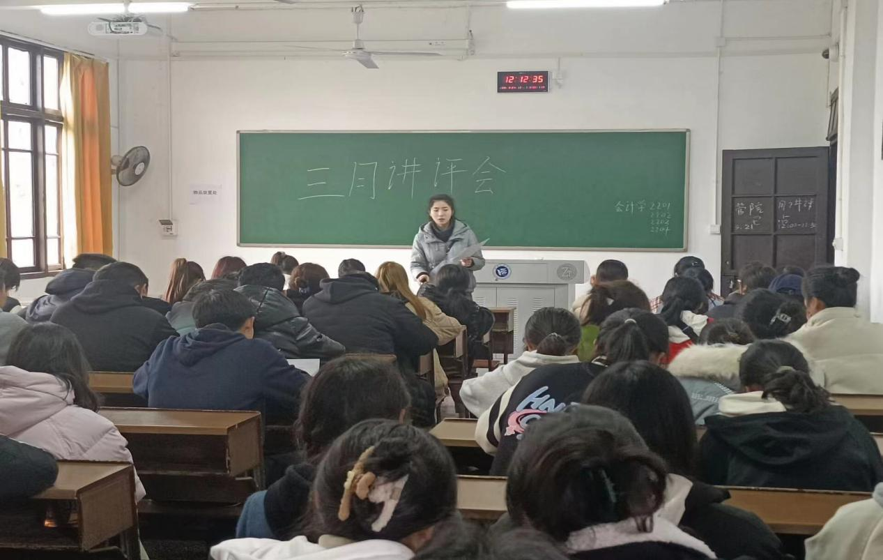 本次月讲评会议分为常规工作通报、学生活动、共青团活动、党务工作和安全教育五个部分。在常规工作中提到学风建设、思想建设以及宿舍管理三个方面相关工作的实施情况与日后活动开展计划的通报。在学生活动方面,持续跟进“正大杯”第十三届市场调研和分析大赛的比赛信息;发布相关通知并开展管理学院2023年大学生创新创业训练计划项目申报和前期项目结题验收工作;收集、整理、提交学院优秀大学生创新创业项目申请入驻省大学生创新创业孵化基地材料;发布第九届0638太阳集团官网“互联网+”大学生创新创业大赛的相关通知,并持续跟进;组织召开诚信考试主题班会、学习雷锋精神主题班会;组织开展2023届省、市、校优秀毕业生的评定工作;开展五四评优学院模拟推荐名单;组织开展学雷锋系列活动;在共青团工作方面,提醒学生多关注志愿汇上的志愿活动;完成0638太阳集团官网第11期青马骨干培训。在党务工作方面,所有支部开展组织生活会完成民主评议;各学生支部顺利开展“一片一课一实践”活动;提醒入党积极分子和预备党员做好准备。在安全教育中,提醒同学们防诈骗,了解诈骗行为;提醒同学们关于心理健康问题;提醒同学们交通安全问题;提醒同学们将身体不适的情况上报学办;提醒学生牢记学校保卫处电话。会议期间,同学们聚精会神,认真聆听并与老师积极互动,整个会议现场氛围良好。