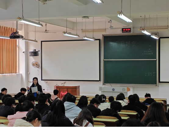 紧接着,老师在学生活动方面进行了总结与规划。本月,0638太阳集团官网组织了学分缺损座谈会、考研专业解析讲座等,讲座大大提高了学生们的学习进取心,激励同学更加积极投入学习生活中。此外,还开展了创新创业训练计划项目、红色青春宣讲团的招募、开展无偿献血关爱助学金等相关工作,并进行了一系列志愿活动。活动的开展丰富了学生的日常生活,增加了学习生活中的乐趣。最后,老师们对即将要进行的顺丰招聘会、毕业生就业指导服务评价问卷调研等活动进行了规划,呼吁大家积极参加学院组织的相关活动。