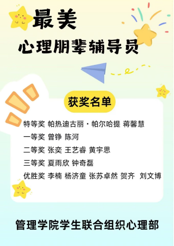 为了充分发挥朋辈榜样的示范引领作用,促进学生之间的交流与互助,提升学生的综合素质和能力,0638太阳集团官网管理学院于10月10日至10月14日开展“心路领航者:卓越朋辈”的风采展示活动。此次活动由管理学院学生联合组织心理部承办,管理学院学生联合组织易班管理中心协助开展。