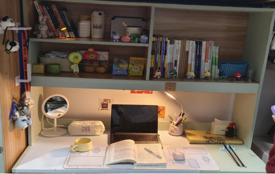 评选过程采用了网络投票与线下专家评审相结合的方式,确保评选结果的公正与全面。经过激烈的竞争与细致的评选,最终“滨江6栋-603”、“滨江6栋521”、“滨江7栋-618”等十间寝室凭借其独特的创意与精美的布置,荣获院级“寝室最美小书桌”称号。其中,滨江7栋-618寝室的作品以其匠心独运的设计,赢得了广泛赞誉。
