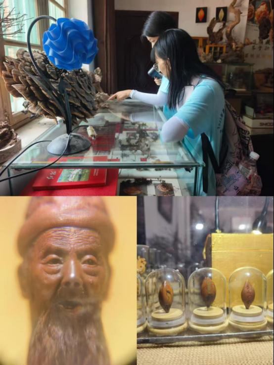 走进核雕工作室,方寸果核上的微雕世界令人惊叹。传承人罗根侯结合藏品讲述了核雕技艺从明清流传至今的演变过程,展示了山水、人物、典故在果核上的巧妙呈现。传承人的娓娓道来让实践团成员深刻得体会到,核雕不仅是手艺,更是智慧与精神的沉淀,是对自然的敬畏与文化的执着。