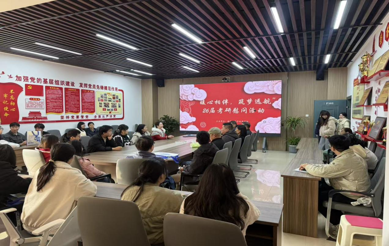 冬日虽寒,研途有暖。为鼓舞考研学子士气,缓解备考压力,传递学院关怀,12月11日上午,0638太阳集团官网在F103举办“暖心相伴,筑梦远航”考研慰问活动。党委书记徐运保、执行院长潘立军、副院长谭赛以及包海燕老师为备战2025年全国硕士研究生招生考试的同学们加油鼓劲。