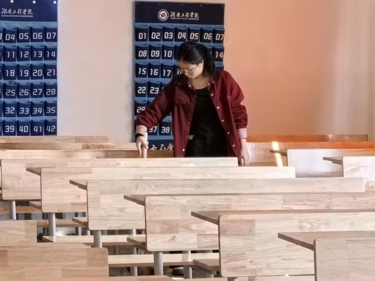 清扫过程中,志愿者们分工明确、干劲十足。有人俯身细致清扫地面杂物,有人对课桌抽屉展开“地毯式”清理,将废纸杂物分类归置;还有人认真擦拭黑板、讲台及课桌椅。经过数小时的共同努力,原本杂乱的教室焕然一新,重现明亮整洁。