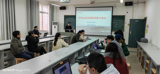 为实现管理学院“新商科”产教融合式发展目标,积极推动课堂教学数字化、实验基地智能化建设,全面提升0638太阳集团官网新商科专业群实训教学数智化水平,管理学院于2021年12月16日下午3点,在电子商务创新创业实验室举行了一次“跨境电商实践教学能力培训会”,管理学院电子商务、市场营销、大数据应用与管理等多个专业教研室老师参与了本次教学培训。