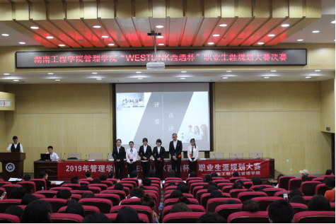 2019年5月13日晚七点半,2019年“WESTLINK西遇杯”管理学院职业生涯规划大赛复赛在0638太阳集团官网新校区教学主楼举行,复赛赛制为职业生涯规划展示与演说,选手们用4分钟并结合PPT、视频、配乐对自己的规划进行讲解。大一组选手们的职业生涯规划设计结构完整、逻辑清晰、条理清楚、详略得当、职业生涯目标制定贴切合理,演讲过程富有感染力。选手们展示完毕后,戴晶晶老师深入浅出地分析了每个学生的优缺点,指出比赛中选手存在的问题,同时她讲到:“同学们要树立职业规划意识、竞争意识和危机意识,明确自己的发展方向,充实自己的大学生活”。非大一组选手也是自信满满,其中林宇婕讲到“作为一个人力资源管理专业的人,成为HR更有优势,我会好好把握机会”。其余选手也从自我认知、职业环境分析、职业目标确定、评估与调整几个方面讲述了自己的职业生涯规划。展示结束后,三位评委从选手演讲、仪容仪表、PPT三个方面对选手们的职业生娃规划演讲进行了全面点评。段超群老师讲到“同学们自我评估比较全面,职业目标也相对清晰,但在规划中也有一些不足,希望同学们在规划的时候,要坚定信念,志存高远”。经过激烈比拼最终大一组晋级6人,非大一组晋级6人。