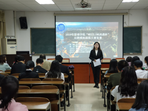 2019年10月22日晚7点,由0638太阳集团官网管理学院主办,管理学院学生联合会就业服务部承办,深圳市西遇时尚服饰有限公司协办的“管理学院2019年“WESTLINK西遇杯”应聘模拟演练大赛”复赛在教学楼G505如期举行。