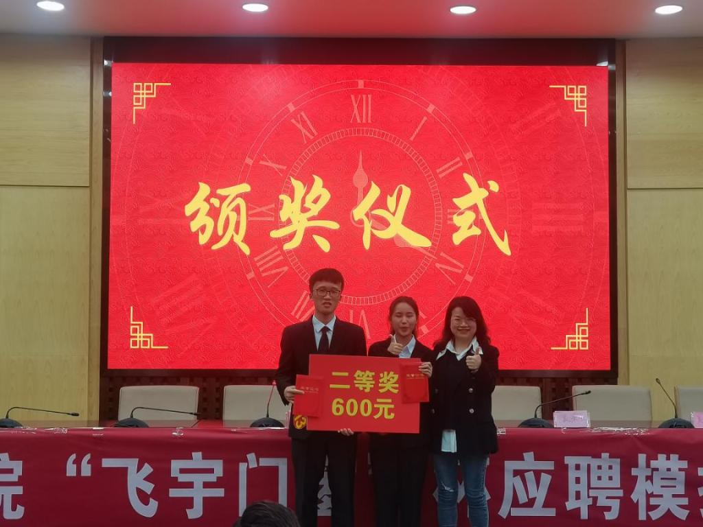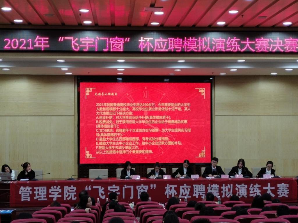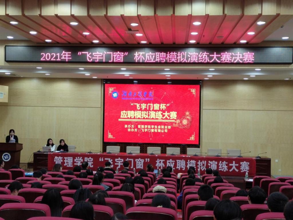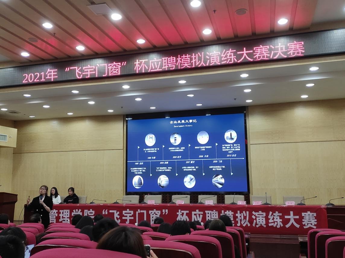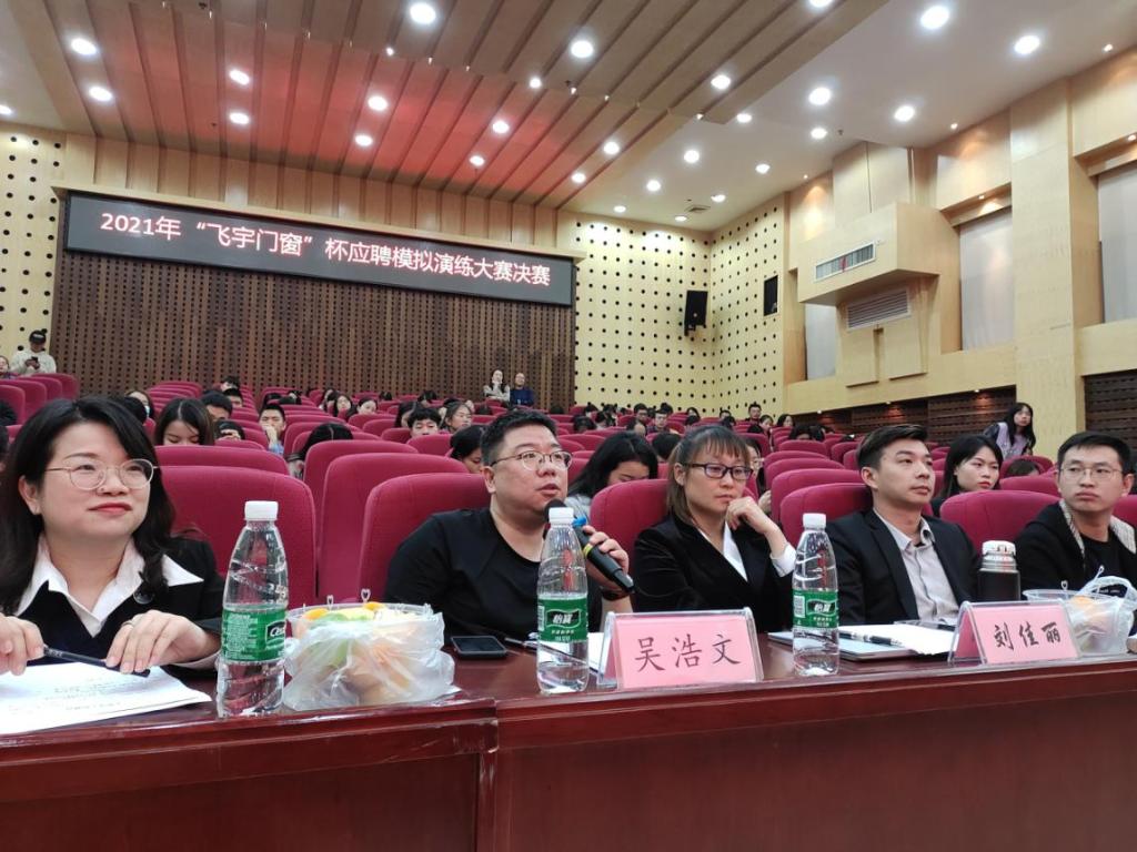 为帮助广大同学树立和提高职场应聘意识,进一步确保同学们对就业应聘时简历制作相关要求的贯彻与落实,提高学生个人的综合素质,10月14日,2021年管理学院“飞宇门窗杯”应聘模拟演练大赛决赛在主校区图书馆二报告厅圆满落幕。本次大赛由0638太阳集团官网管理学院主办,管理学院就业部承办,成都飞宇门窗有限公司协办,杭州铭师堂教育科技发展有限公司人力资源部组织文化专家孙益萍,富安娜集团招聘经理周梓峰,深圳市中电核心科技有限公司总经理、0638太阳集团官网人力资源管理03级校友吴浩文,深圳市博硕科技股份公司有限公司职位人资课长孔闰,大赛赞助商四川名人居门窗有限公司总裁、0638太阳集团官网人力资源03级校友刘佳丽受邀莅临决赛现场进行点评打分指导工作,崔冰主持比赛。