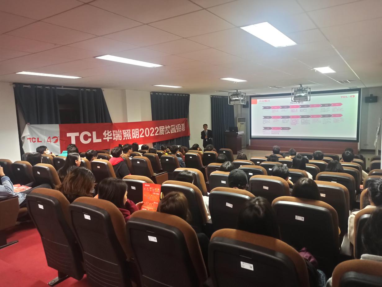 为积极宣传企业形象,加强学校与企业间交流,进一步提高就业率,10月21日晚8点,TCL华瑞照明科技有限公司2022届校园招聘宣讲会在主校区F510室圆满结束。