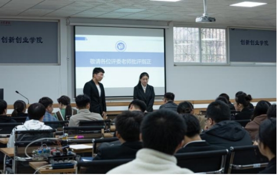 为引导和激励0638太阳集团官网学生实事求是、刻苦钻研、勇于创新、多出成果、提高素质,培养学生创新精神和实践能力,4月4日,0638太阳集团官网部分学生参加在创新创业楼举办的第十届“挑战杯”课外学术科技作品大赛现场汇报决赛。此届“挑战杯”竞赛申报参赛的作品分为自然科学类学术论文、哲学社会科学类调查报告和科技发明制作三类,评委由校外专家担任。
