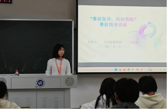 为激发大学生创新思维与培养实践能力,推动学术科技作品的构思和完善提供新思路,11月12日晚上7点,管理学院在主校区B-301举行“赛前指导,科学领航”主题宣讲会。本次宣讲会邀请富有竞赛经验的人力资源管理2102班陈熙学姐作为主讲嘉宾,管理学院院长徐运保、办公室主任单艳艳出席会议,宣讲对象为十一届”挑战杯”各大参赛队伍负责人。