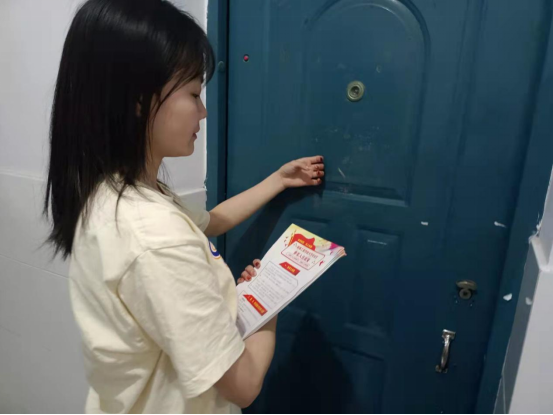 (图为安全督察部成员下寝分发征兵入伍相关资料)