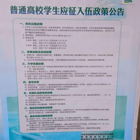 (图为张贴公告栏的入伍政策)